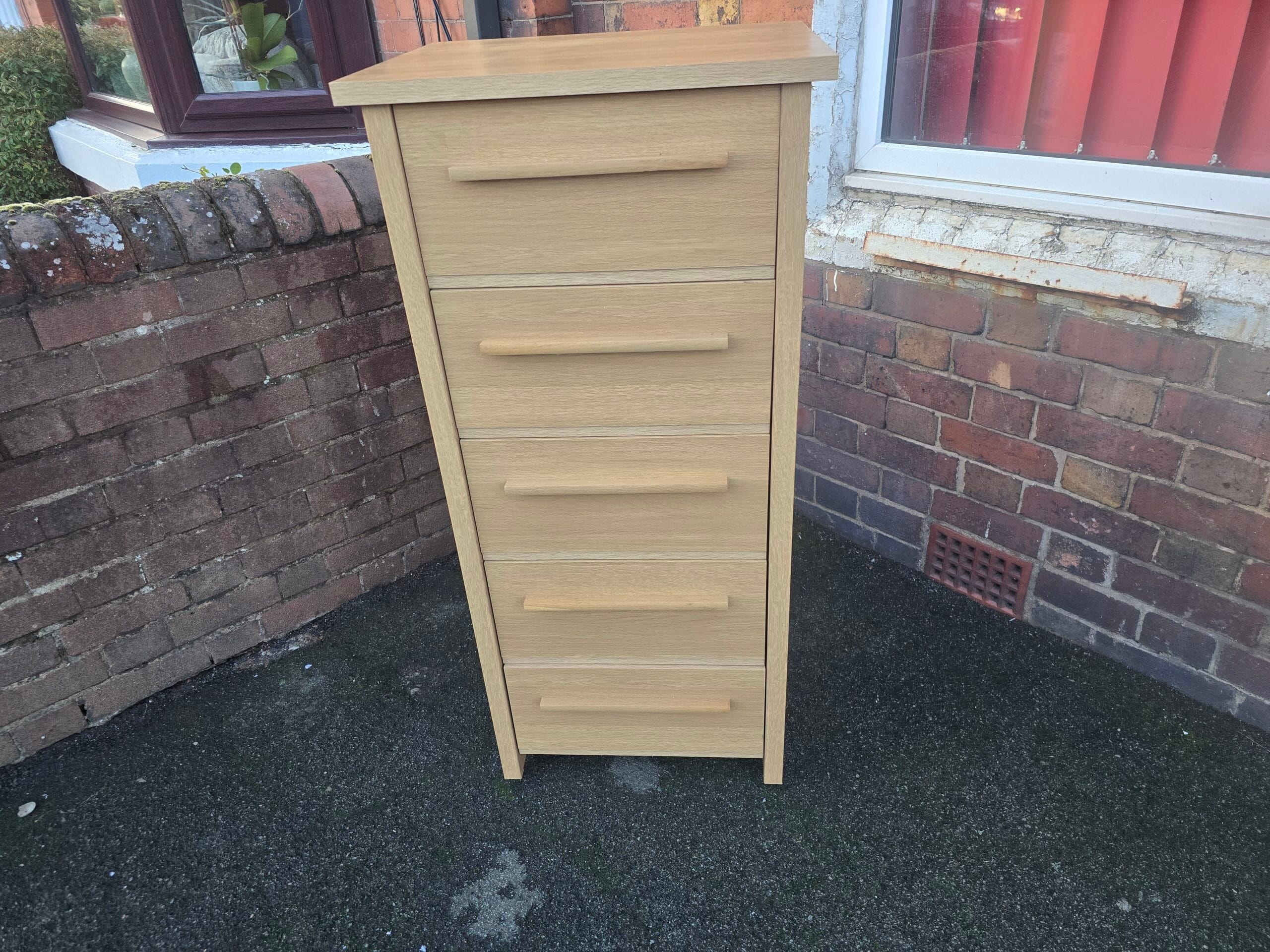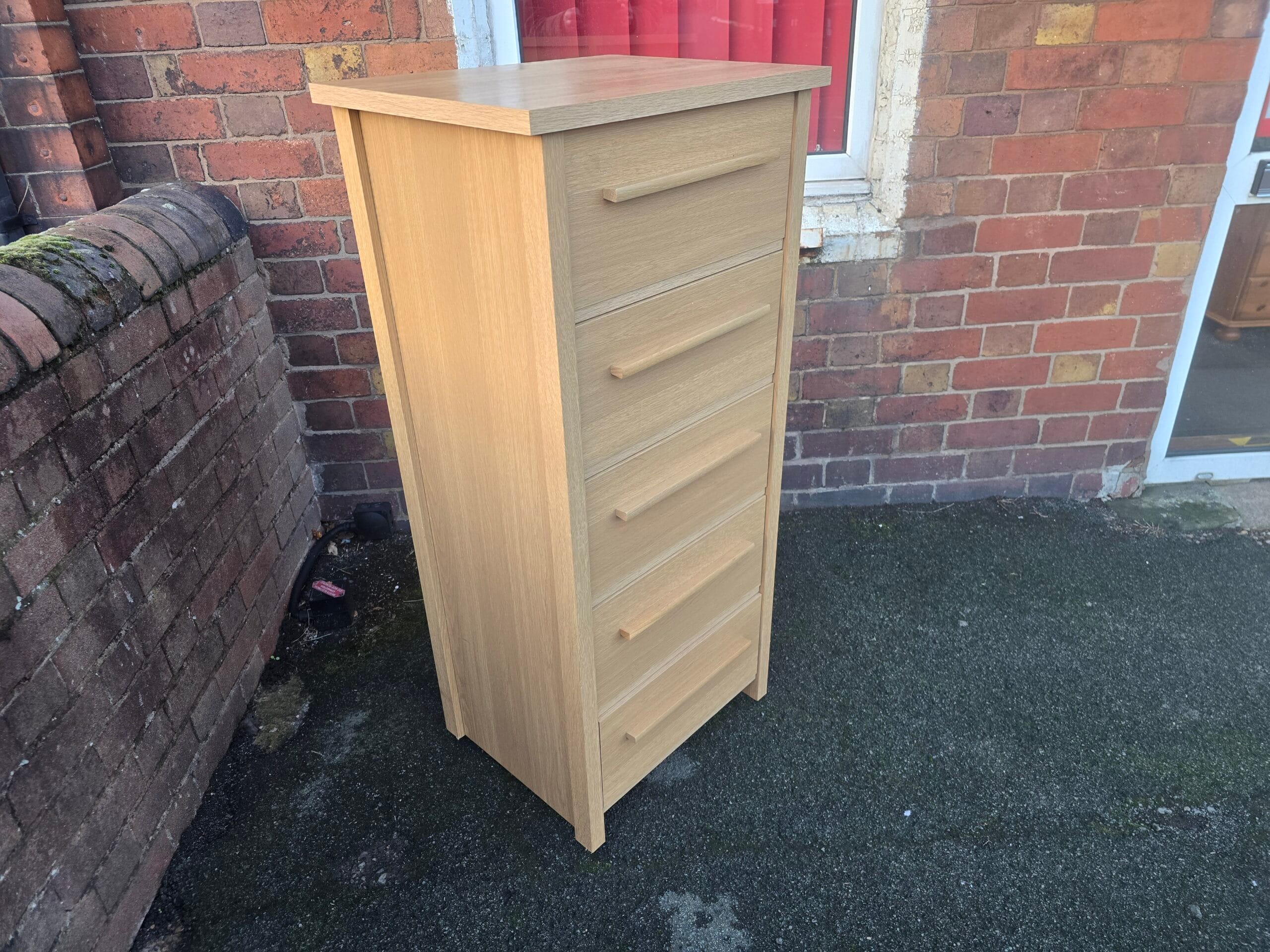 Tall Narrow Modern 5 Drawer Chest of Drawers in good condition.